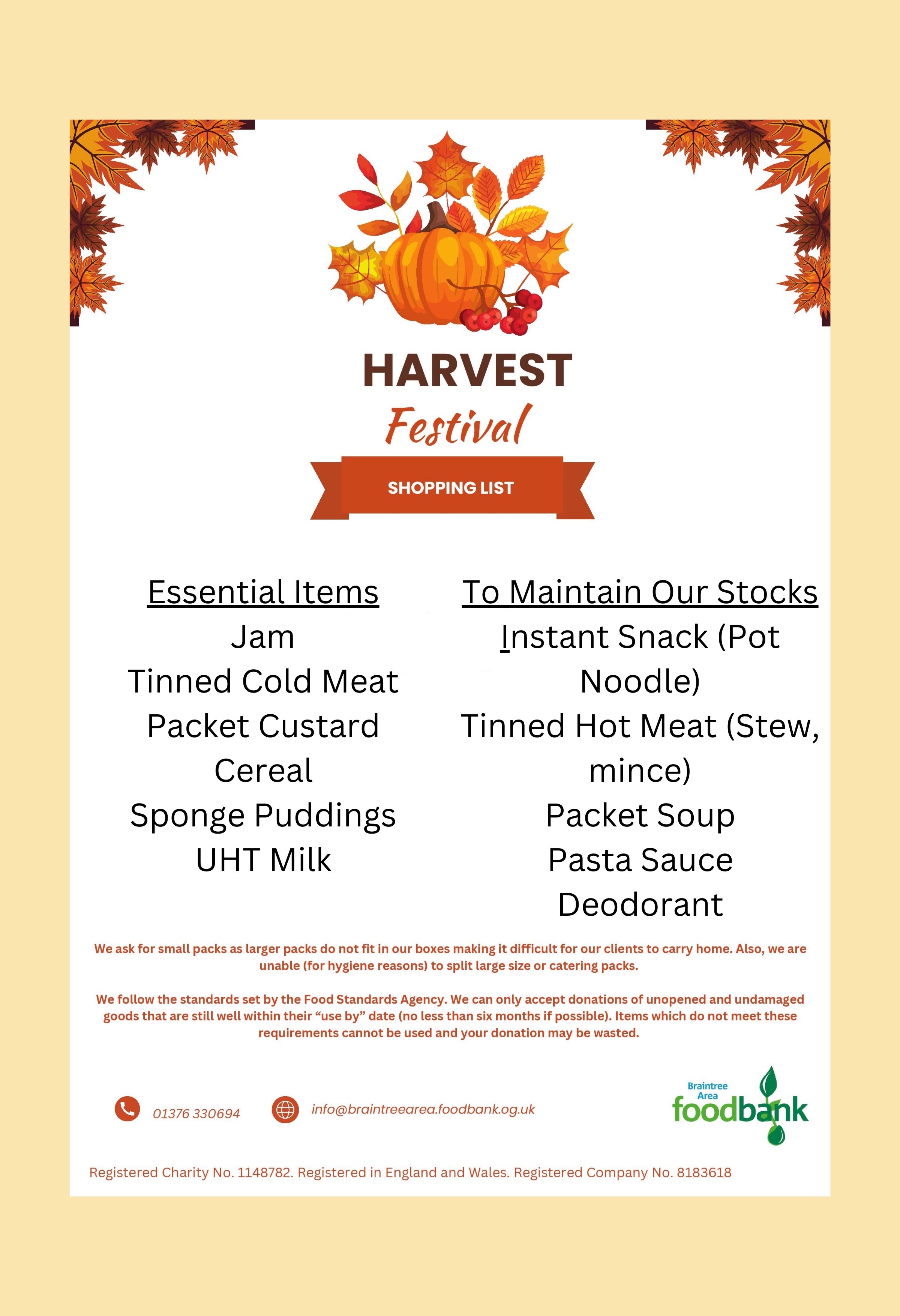 If you would like to donate, please send your contribution in with your child/children by Thursday 5th October and we will ensure they are distributed via the Church or Braintree Foodbank.